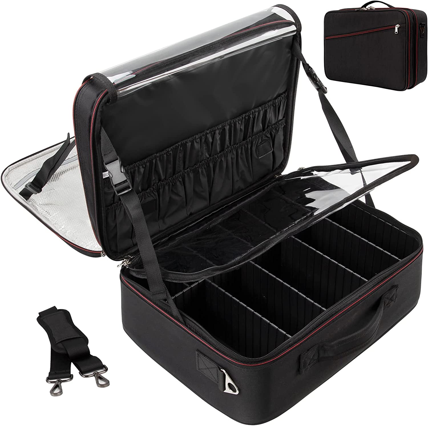 Large Makeup Case, Makeup Bag Organizer Travel Cosmetic Case Portable Artist Storage Bag with Washable Plastic Divider and Heat Insulation Layer For Lipstick Makeup Toiletry Accessories Black