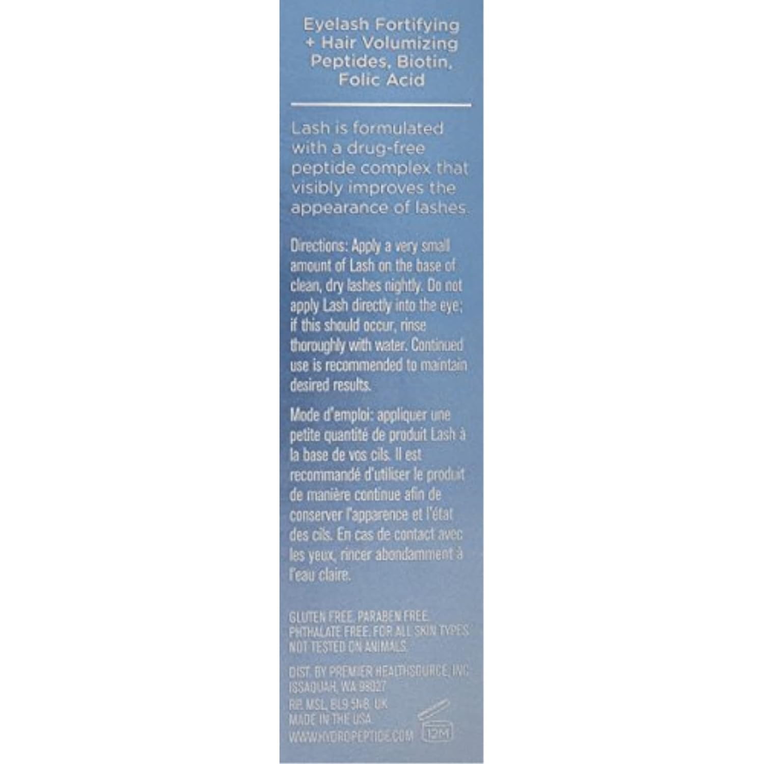 Hydro Peptide lash longer fuller lusher contains a triple peptide complex containing octapeptide-2 (proharin 4), myristoyl hexapeptide-16, and hexapeptide-17 that strengthen and condition the hair follicle for longer and fuller lashes.