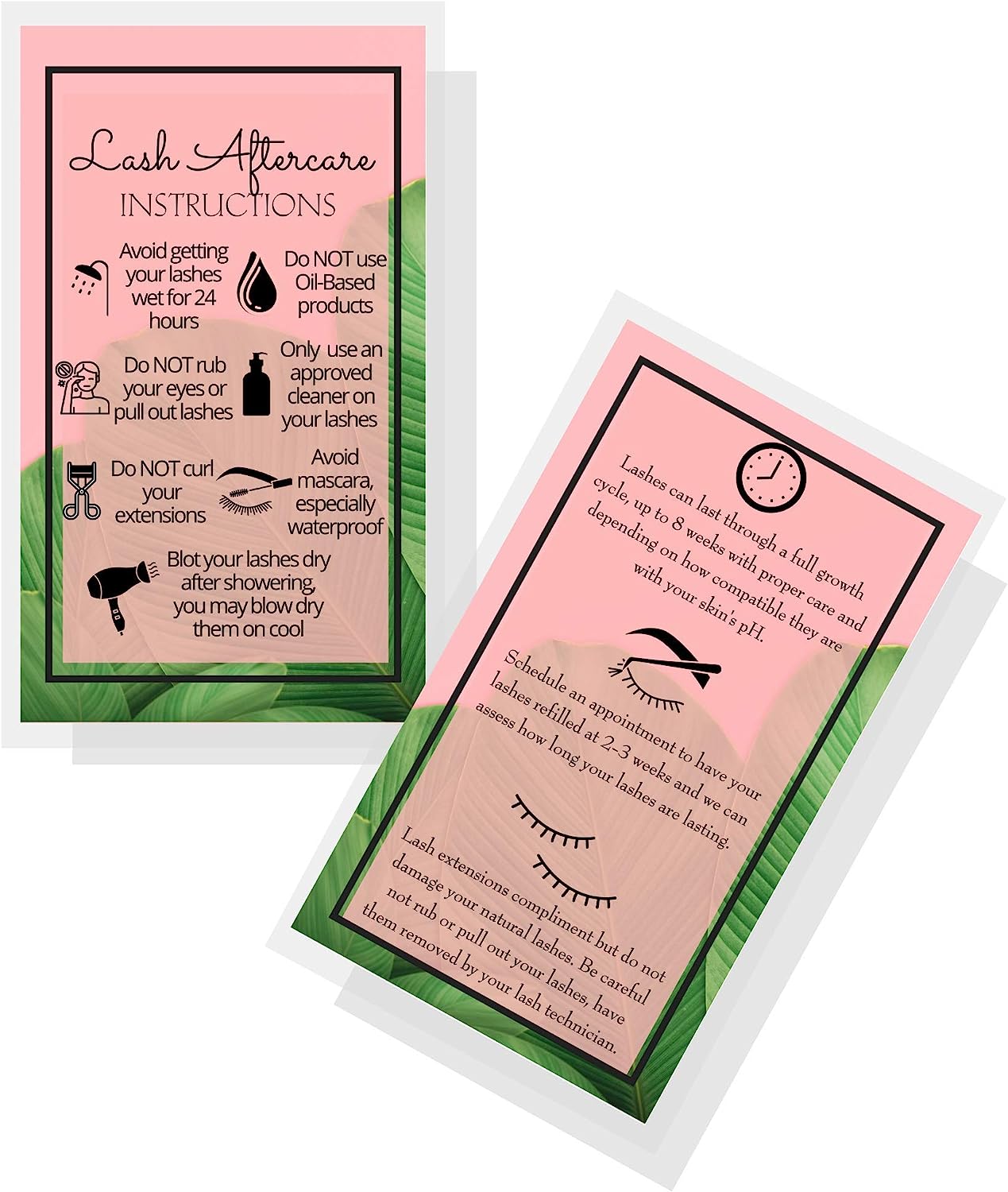 The colors, patterns, and designs on this unique card vary! These are perfect for handing to your clients after their first lash extension application and after each refill.