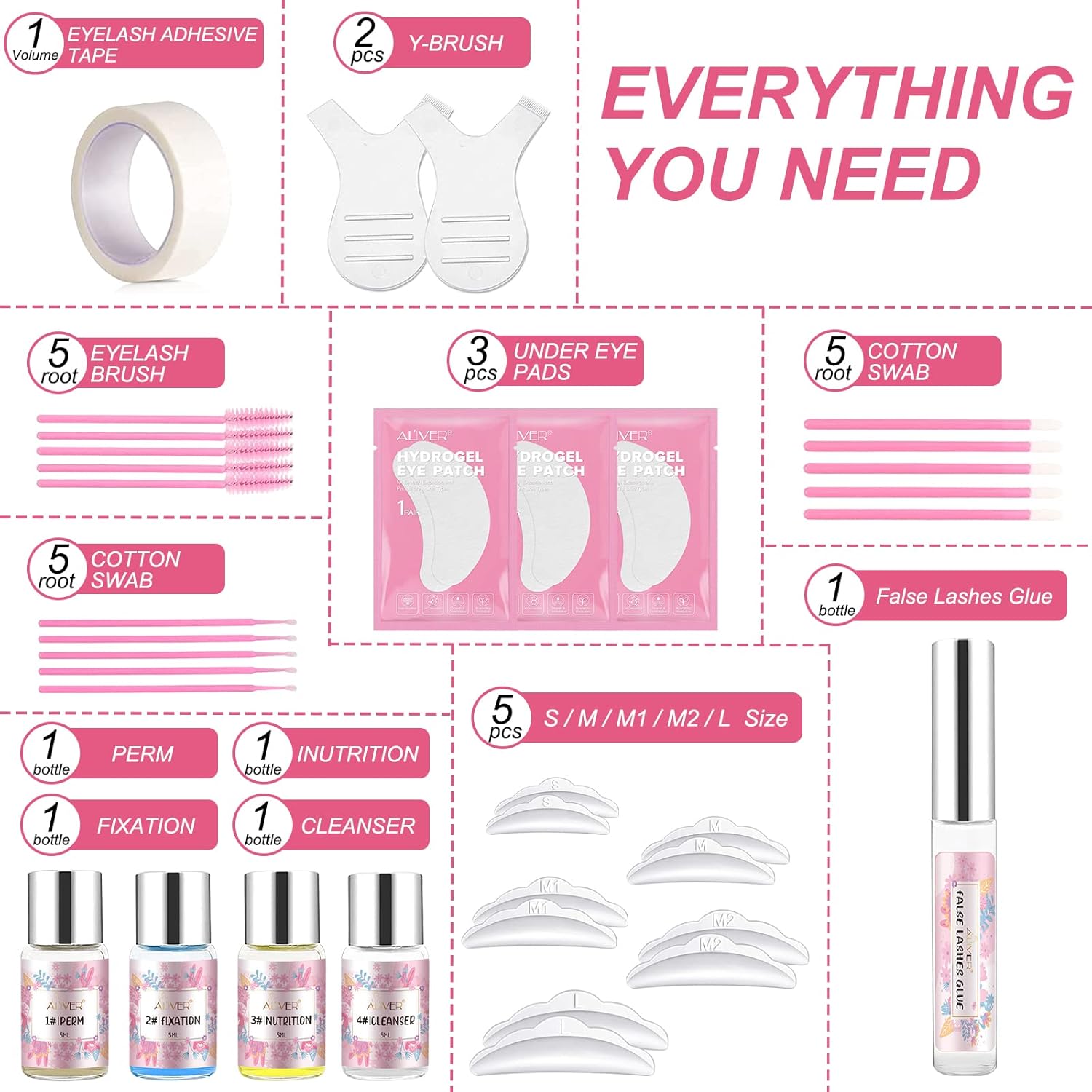 Packing Includes: #1 Perm lotion: Soften eyelash, make eyelash according to the radian of patch roll become warped #2 Fixed Lotion: Fixed eyelashes, eyelashes to keep curling #3 Nourish Lotion: Nourish eyelashes, restore elasticity and luster to eyelashes #4 Cleanser: Clean eyelashes and glue on the patches Glue: Used to paste silicone patch on upper eyelid, eyelashes on the patches Ingredients: #1 Perm:Polyacrylamide, thioglycolic acid, propylene glycol, purified water.