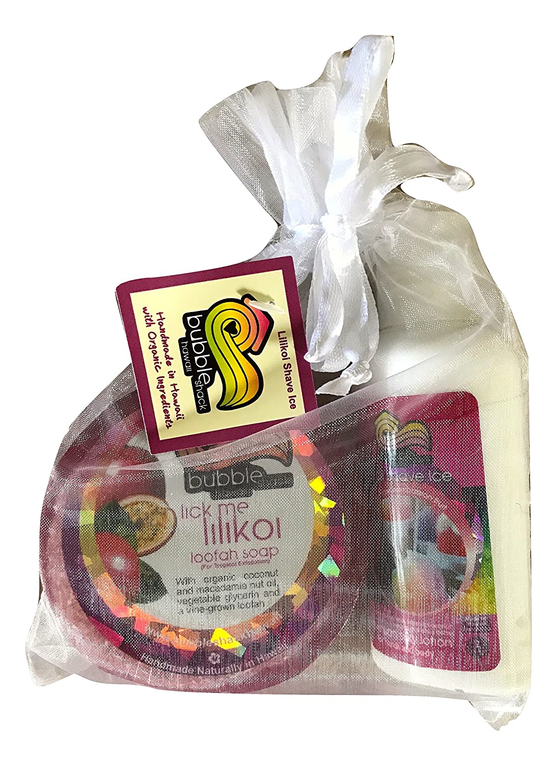 Featuring one 2oz Lilikoi Shave Ice Mini Lotion and one exfoliating loofah lather soap!