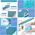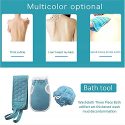 Logang Body Exfoliator Scrubbers Back Scrubber Massage Shower & Deep Exfoliation Sponge Pad Set, Premium Scrub Cleaning ToolsThis soft shower scrubber set by Lohang thoroughly removes dirt and clogged pores of whole body , clears dry and dead skin, removes and prevents back acne, relieves itching caused by dry skin, helps improve blood circulation, leaving skin young, healthy and glowing. Suitable for all skin types.Specification:Material:Plants fiberColor:cyan-blue,gray,Size: 1 Back scrubber (33.5 3.6inch) + 1 Exfoliating mitt (9 5.5inch) + 1 Bath sponges(4.8 4.8inch).Package Dmensions: 8 x 5 x 1 inches; 2.82 OuncesProduct Features:Premium a honeycomb texture design surface provide stronger friction,serving a dual function as a massager.The back scrubber, the exfoliating glove and the bath sponges make you have three different experiences, which can make your body get rid of the dead angle of 360 degrees. For example, you can enjoy the scrubbing feeling brought by the rough surface of the rubbing back scrubber and the rubbing glove, and also enjoy the softness of the high-quality loofah.The strong handle make you no worry about breaking.Lightweight, compact, durable, suitable for family hotel showersThe super-reinforced handle design not only brings a more flexible bathing experience for big size people, but also makes it more convenient for us to store and hang it, which is not easy to breed bacteria.
