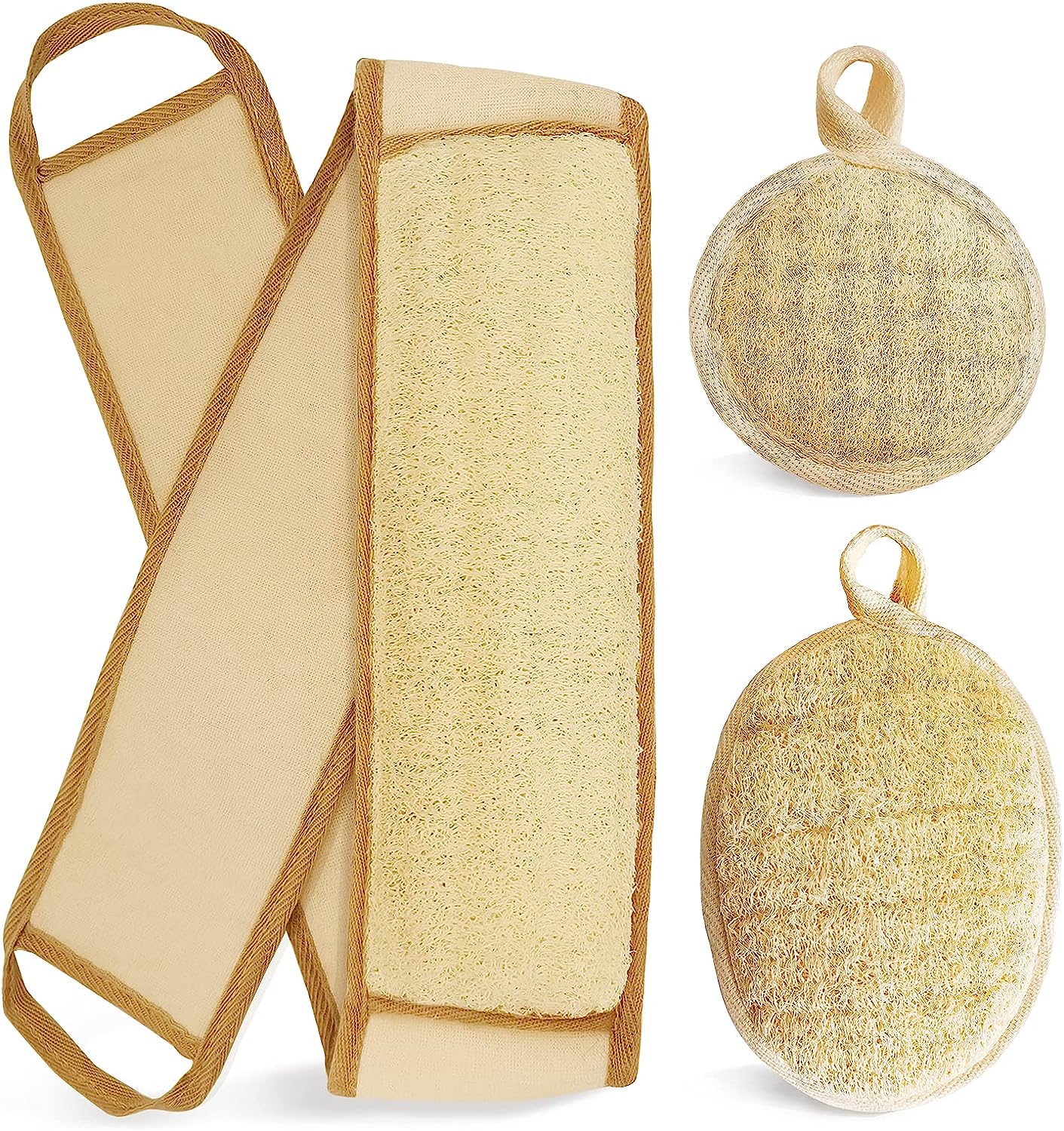 Loofah Sponge Back Exfoliating Scrubber Combo Set, Seep Cleansing Skin and Facial Loofah Pad