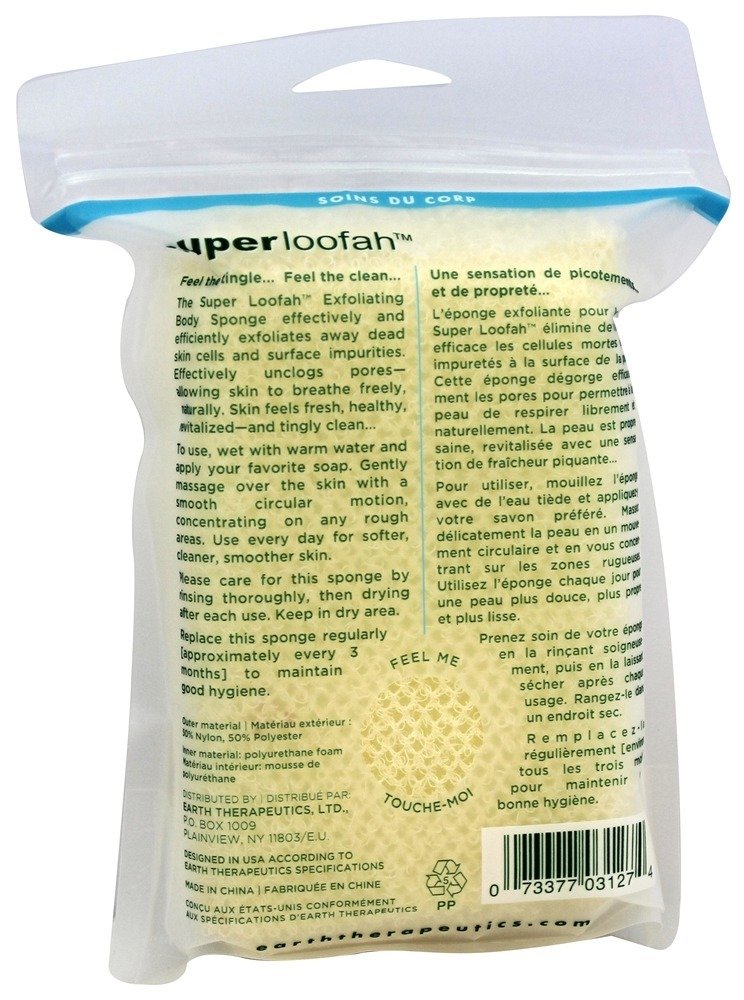The Super Loofah Exfoliating Body Sponge effectively and efficiently exfoliates away dead skin cells and surface impurities.