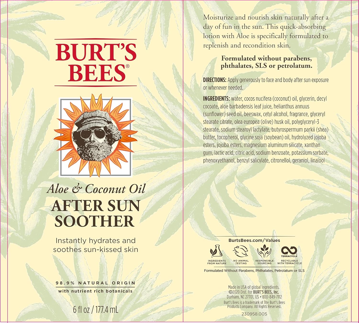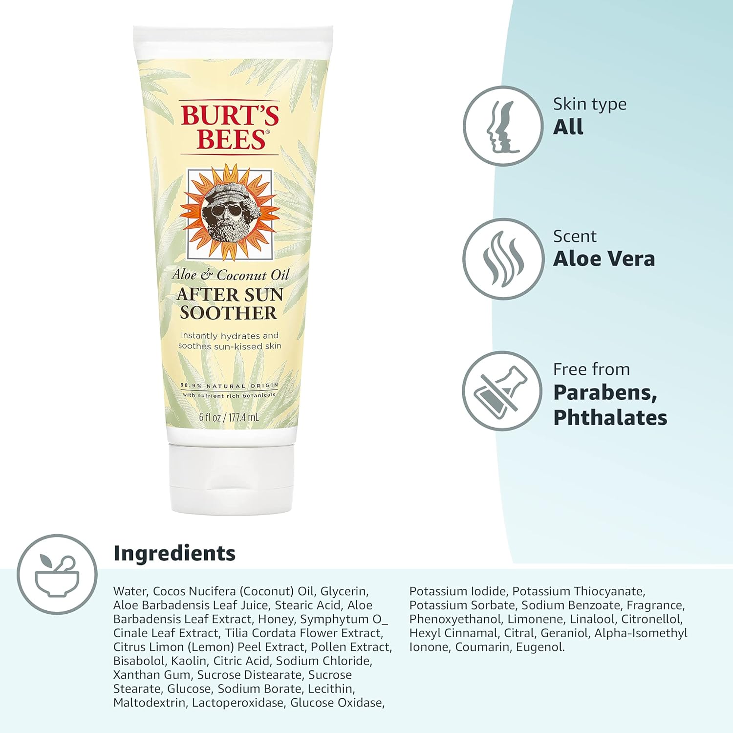 Your sun-kissed skin will feel revived with hydrating Burt”s Bees Aloe & Coconut Oil After Sun Soother.