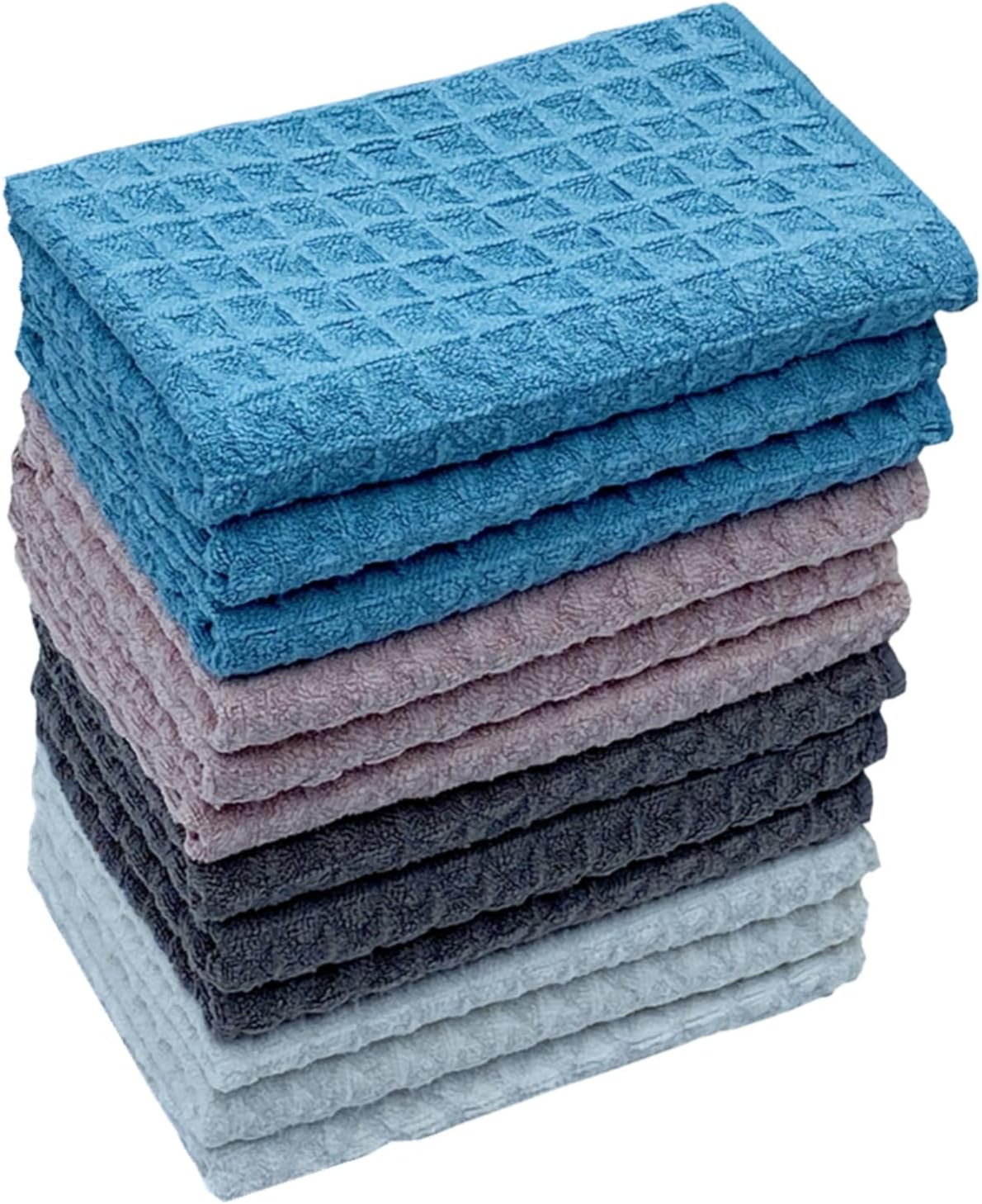 Luxury Microfiber Waffle Washcloths Face Towel Hand Cloth Set 12-Pack for Bathroom-Hotel-Spa-Kitchen Multi-Purpose Fingertip Towels,Ultra Soft, Absorbent,Multicolor,11.5”” x 11.5””