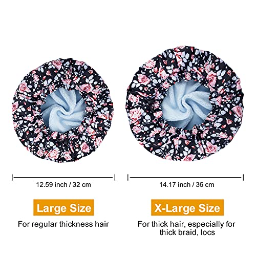 Keep Your Hair Dry – Double Layers DesignThis shower cap is made of premium waterproof materials, with water absorption cotton lined, effectively prevent your hair from water or moisture, and you dont need to wash your hair everyday for hair health.