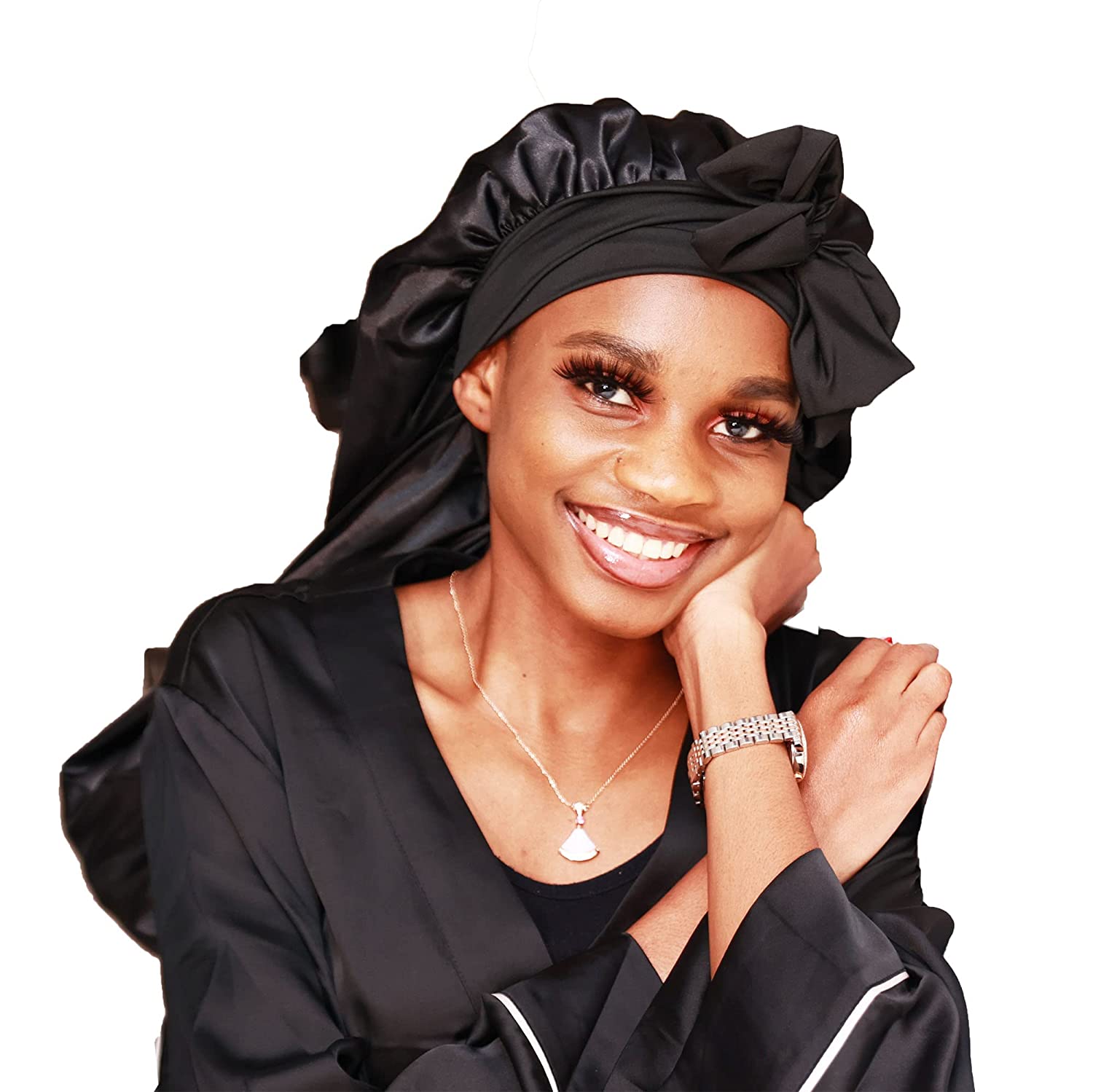 Keep Your Hair Dry – Double Layers DesignThis shower cap is made of premium waterproof materials, with soft silk satin lined, effectively prevent your hair from water or moisture, and you dont need to wash your hair everyday for hair health.