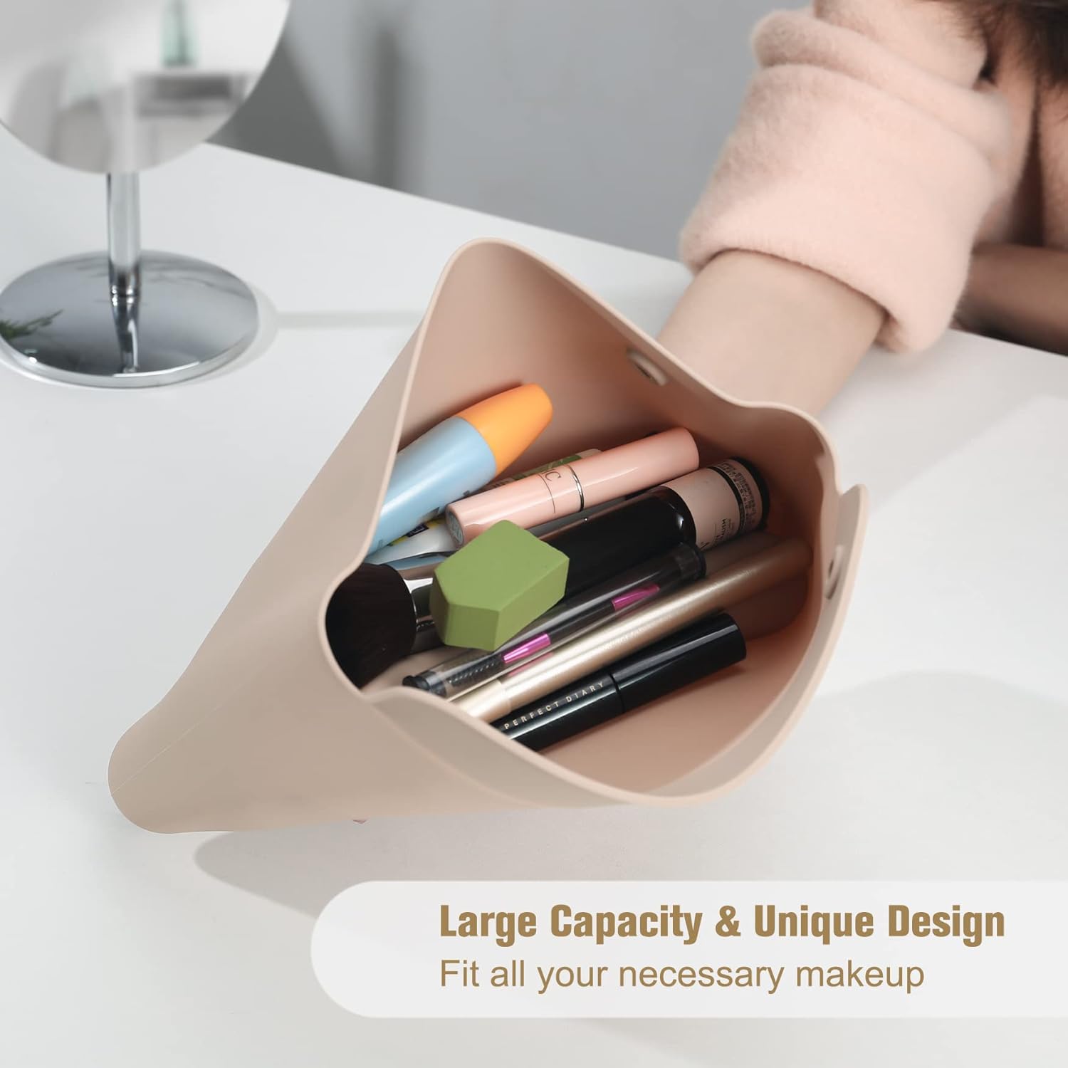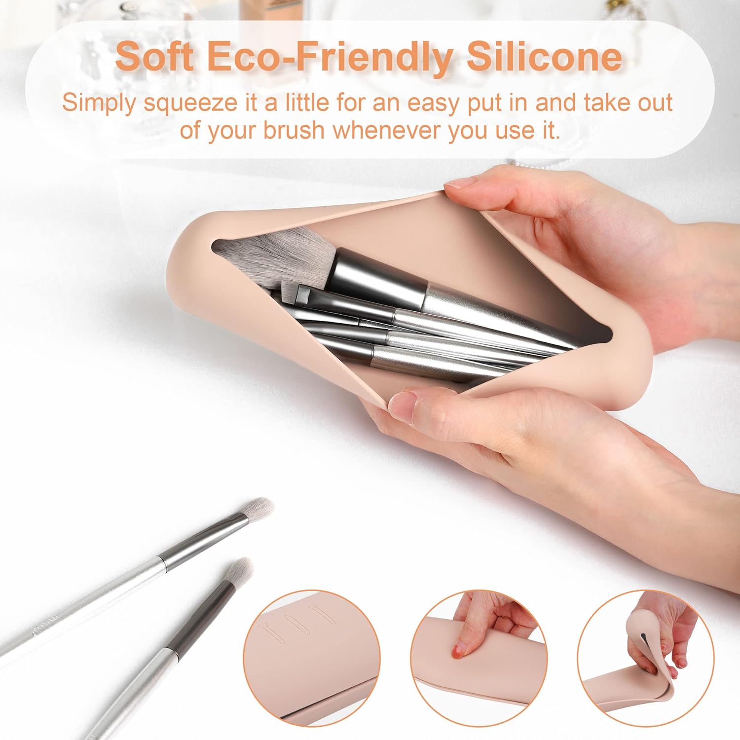 Cute, Soft, and Sleek Design The silicon cosmetic brush holder features a beautiful cylindrical design with neutral tones that accentuates your aesthetics and convenience.
