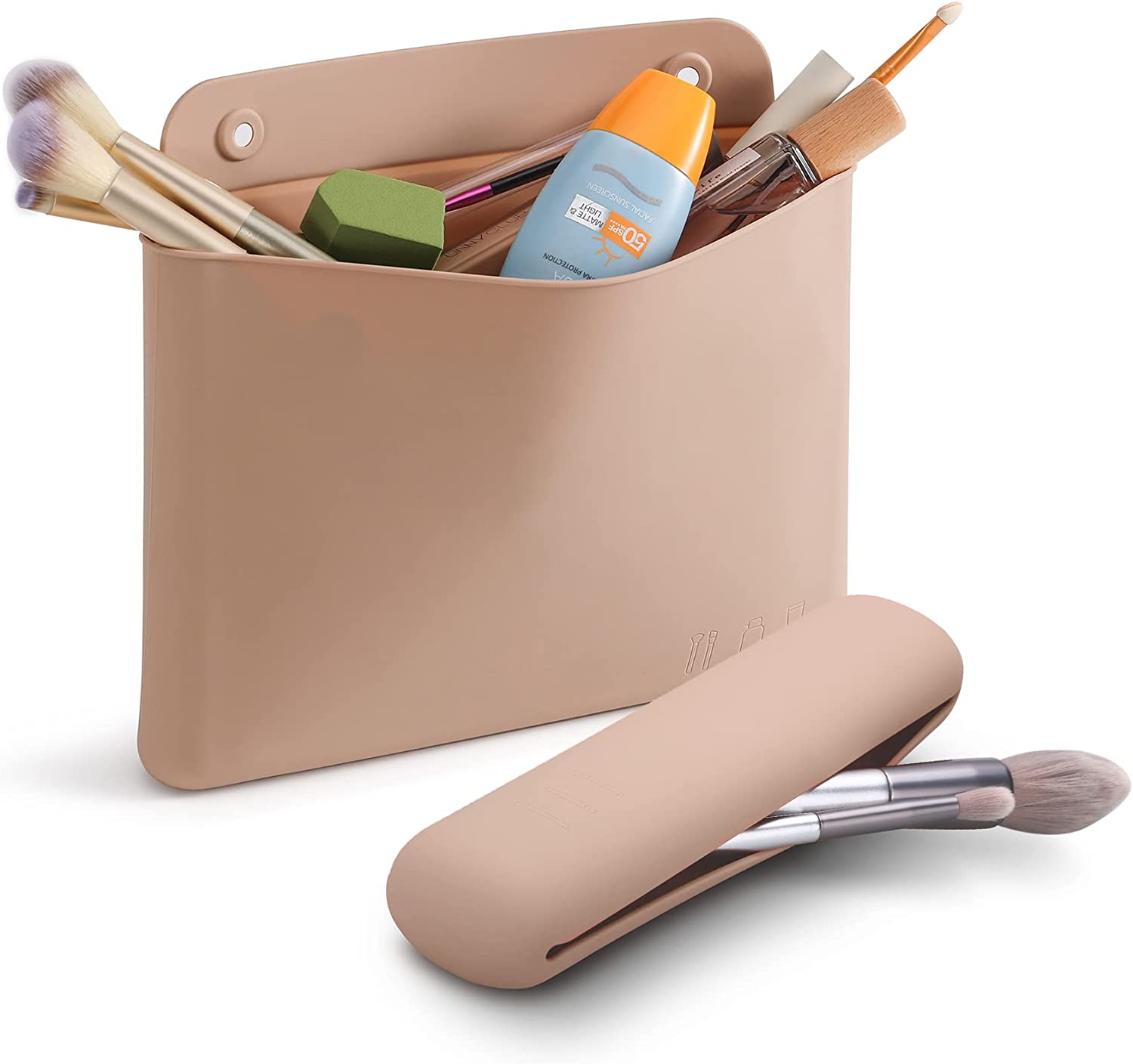 Cute, Soft, and Sleek Design The silicon cosmetic brush holder features a beautiful cylindrical design with neutral tones that accentuates your aesthetics and convenience.