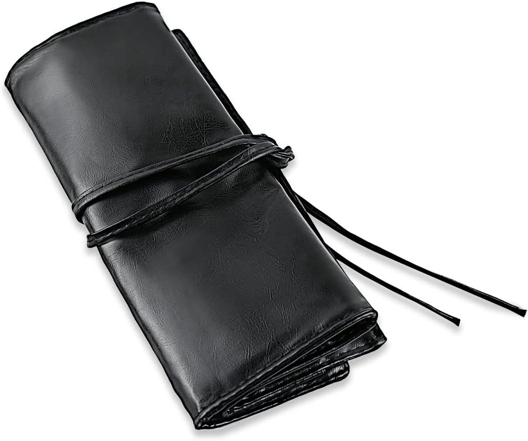 Makeup Brush Holder Case Portable Cosmetic Brushes Bag Makeup Brush Organizer for Travel Makeup Brush Pouch PU Leather Folding Makeup Brush Holder Brush Storage Bag with Belt Strap (Black)