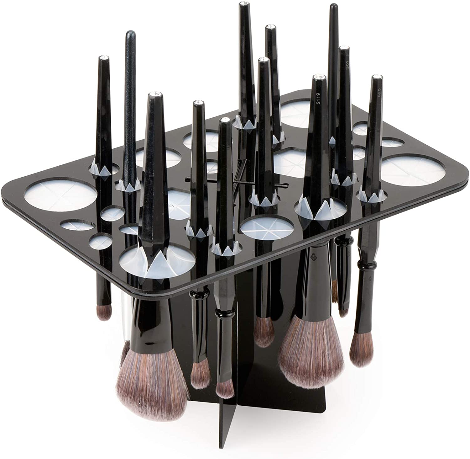 Makeup Brushes Drying Rack, Brushes Dryer, Collapsible 28 Slot Acrylic Brush Holder Stand Tree Tray Support Display for Makeup Artist Acrylic Nail Brushes Paintbrushes Makeup Lovers, Black