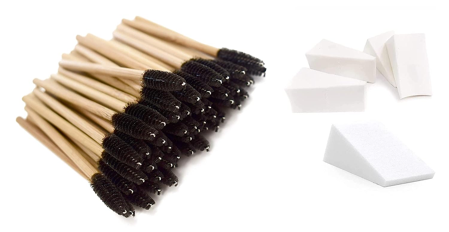 Makeup Sponge Mini Applicator Wedges (100 Pack) and Eco Friendly Bamboo Straight Tip Mascara Wands (50 Pack) Professional Option for Single-Use Application