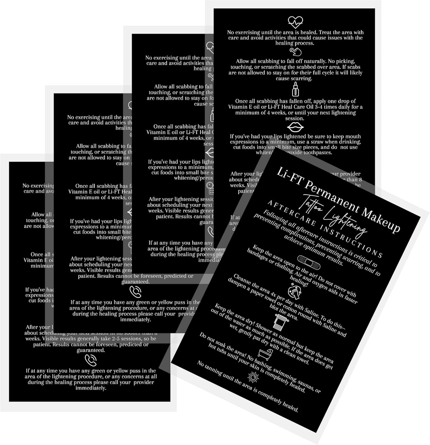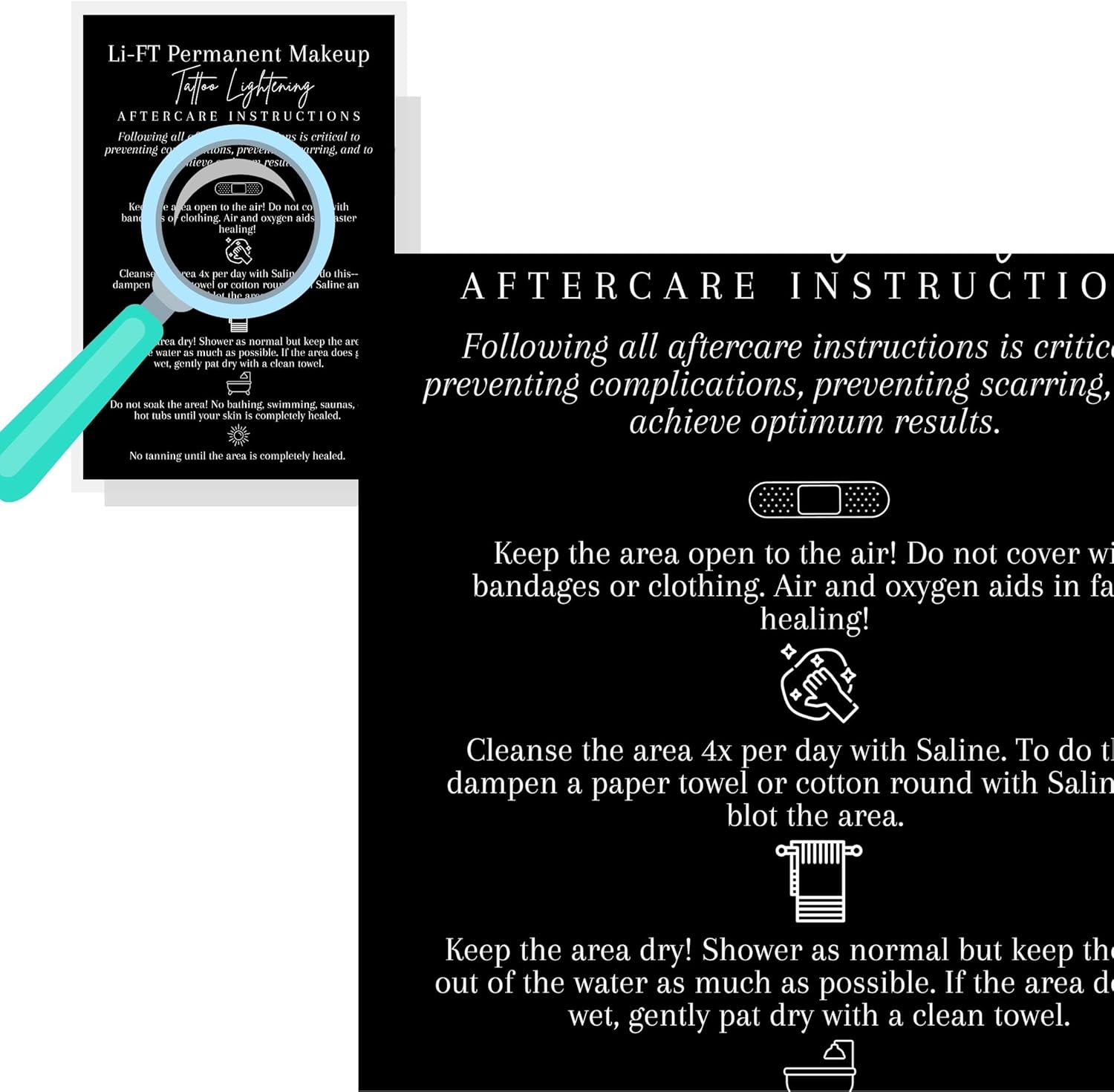 WHY BUY: As a provider offering tattoo removal you need the best aftercare instructions with as much detail as possible! Having them printed on this nice quality card stock makes it even more likely your clients will keep their instructions and read them thoroughly.