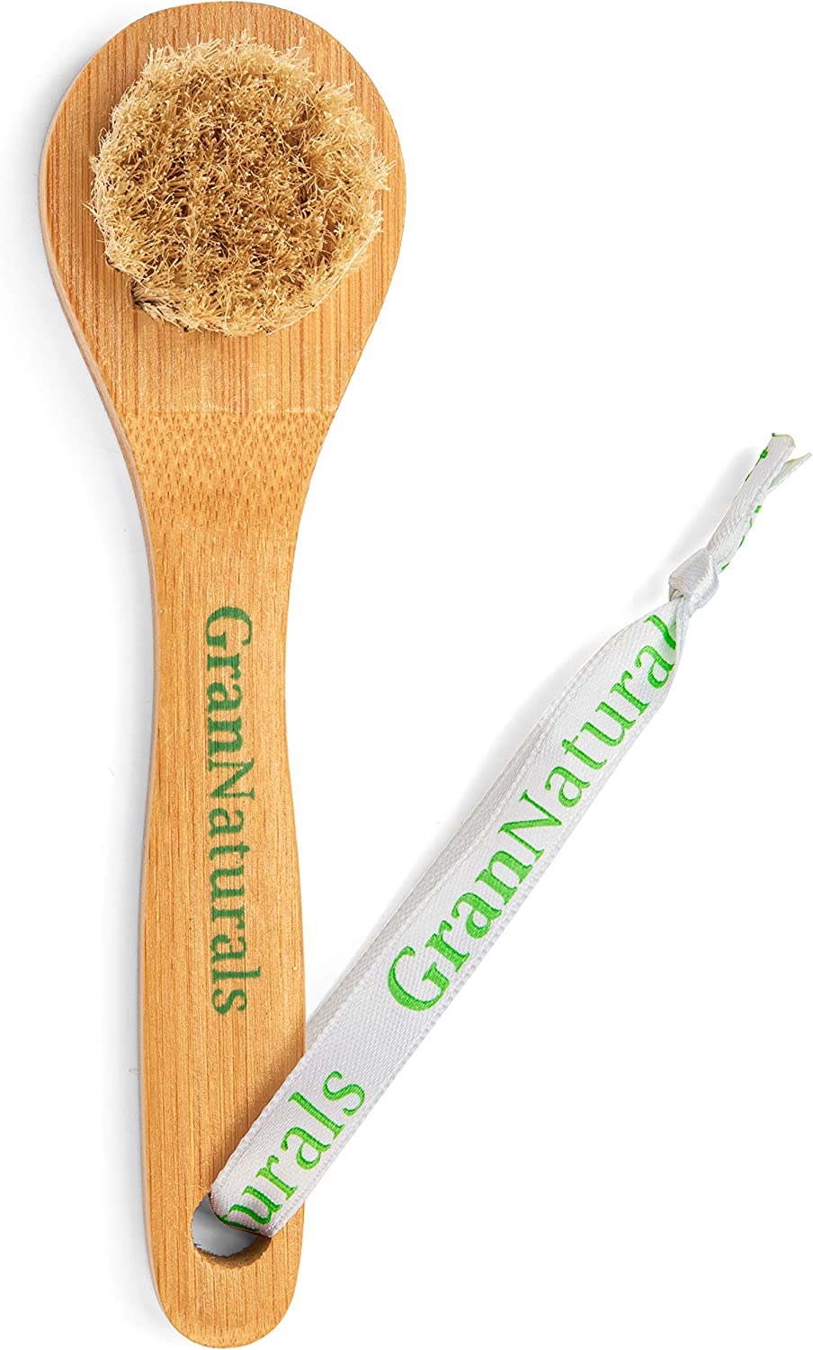 Manual Facial Brush Dry Brushing Scrubber – Natural Bristles for Exfoliation – Promotes Lymphatic Drainage, Deep Cleansing, Gentle Pore Cleaning for Glowing, Soft Skin – Wooden Handle