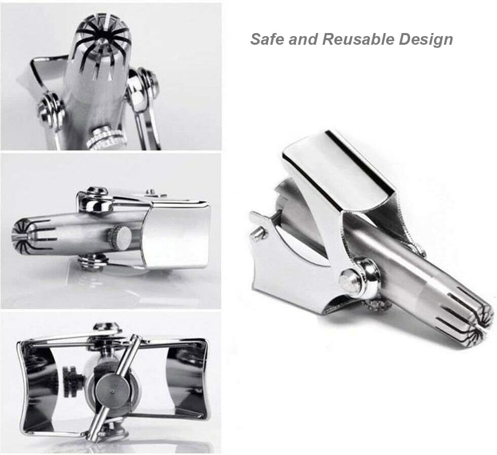 Stainless-steelblades match the contour of your nostrils to trim the hair safely andprecisely, without irritating skin or pulling hairs.