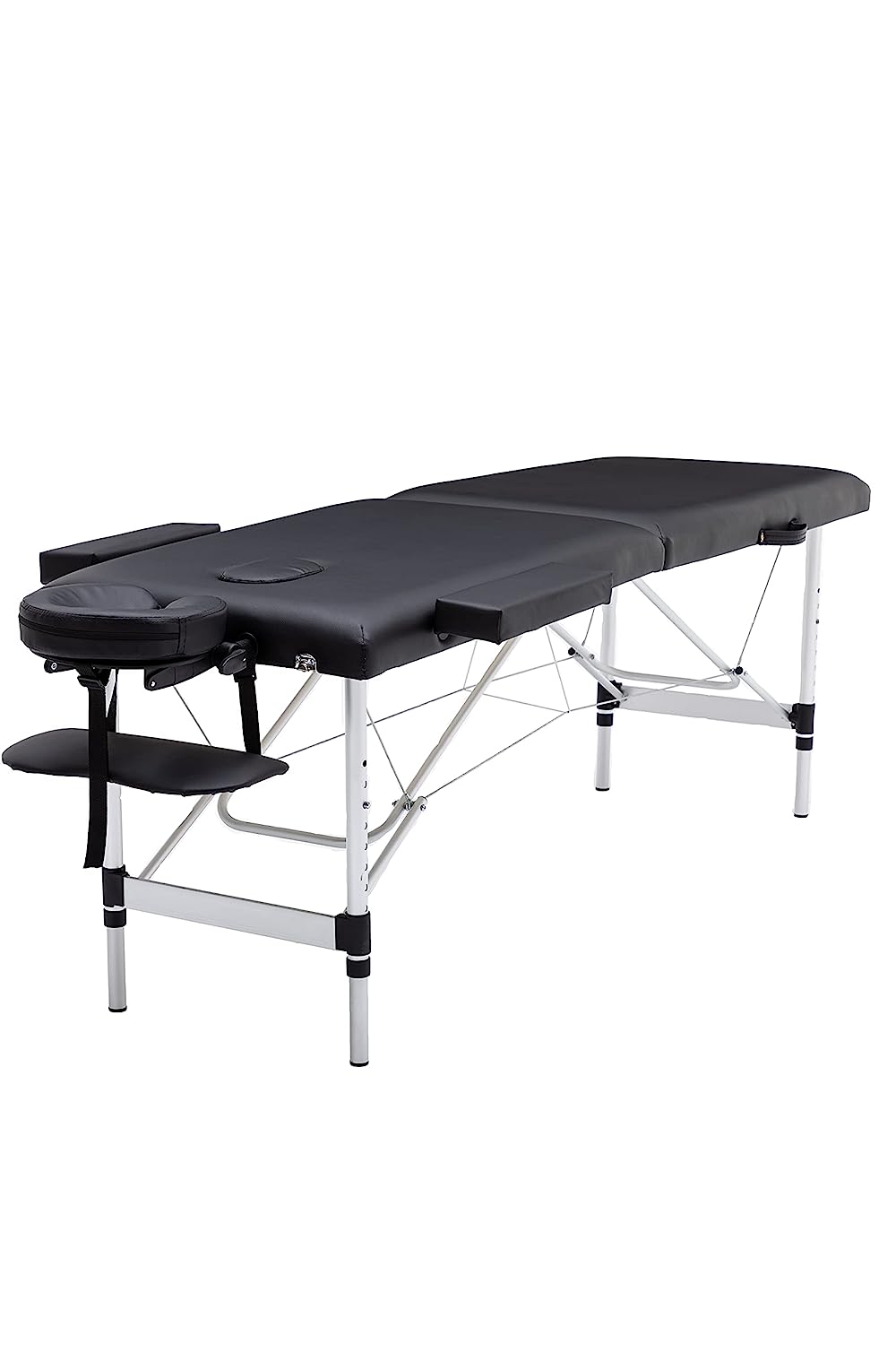 Massage Professional Lightweight Portable Aluminium Massage Table 72 Inch 2 Fold Height Adjustable Facial Salon Tattoo Bed W/Face Cradle Carry Case,Black