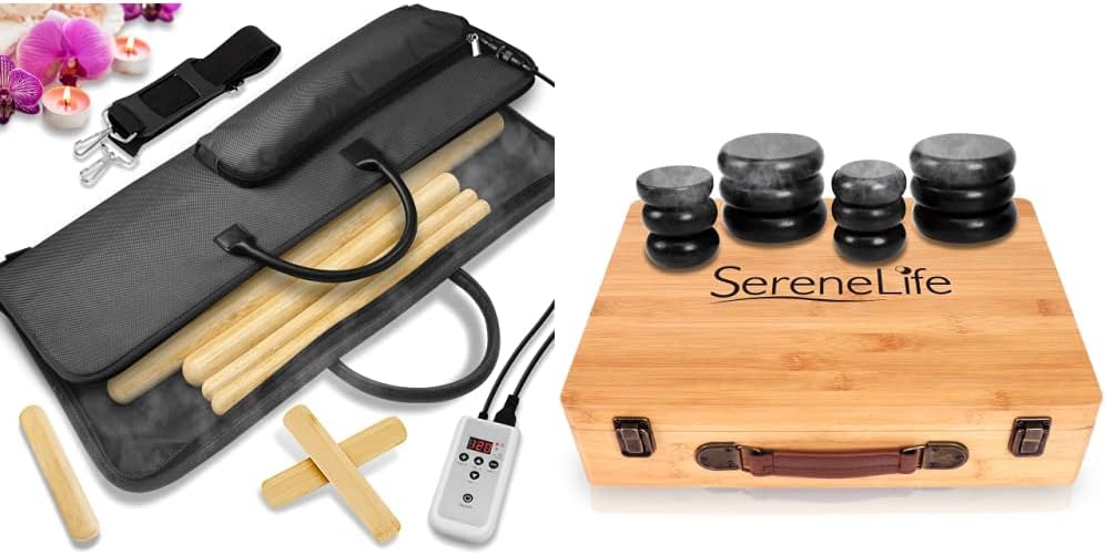 Product 1: INCLUDES HEATING BAG: The electric hot bamboo massage warmer set comes w/ a lightweight energy-efficient storage / travel bag case that doubles as stone/bamboo sticks heater oven. Designed to comfortably hold all 8 included bamboo massage sticks