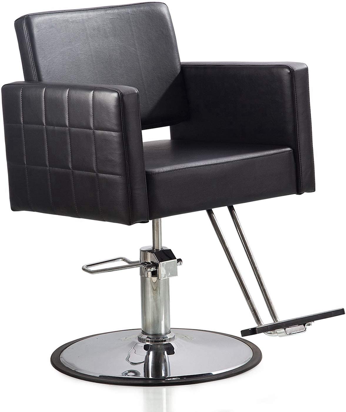 Model: Barber chair Material: Steel frame/ Faux leather Color: black Warranty: 1 year on hydraulic pump Size information: Chair width: 25 inch with armrest seat width: 19 inch seat depth: 19 inch Height: 32.