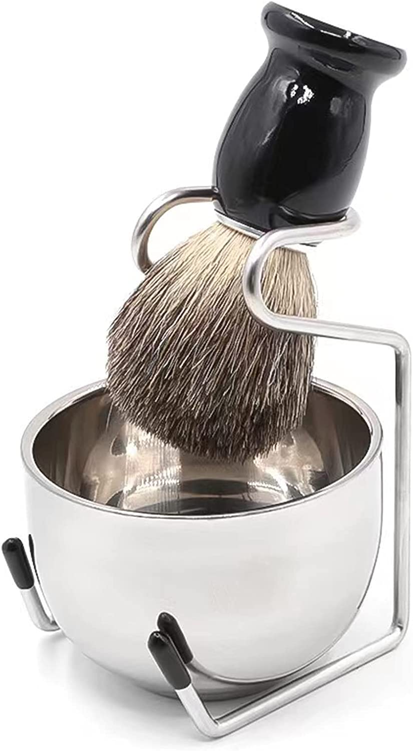 Men”s Shaving Brush Kit 3 in 1 Wet Shaving Kit with Badger Hair Shaving Brush, Stainless Steel Shaving Bowl, Stainless Steel Shaving Brush Stand Holder for Men Traditional Wet Shave