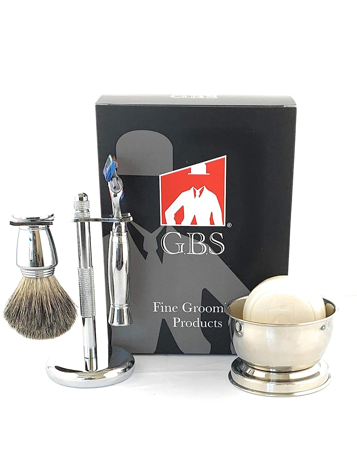 Dual stand for razor and brush & 5 DE Sharp Blades- Our Razor is durable enough for your daily use. A Vintage-designed double-sided structure to hold both razor and brush. This razor stand is a fabulous gift for a male ensure a long-lasting razor.