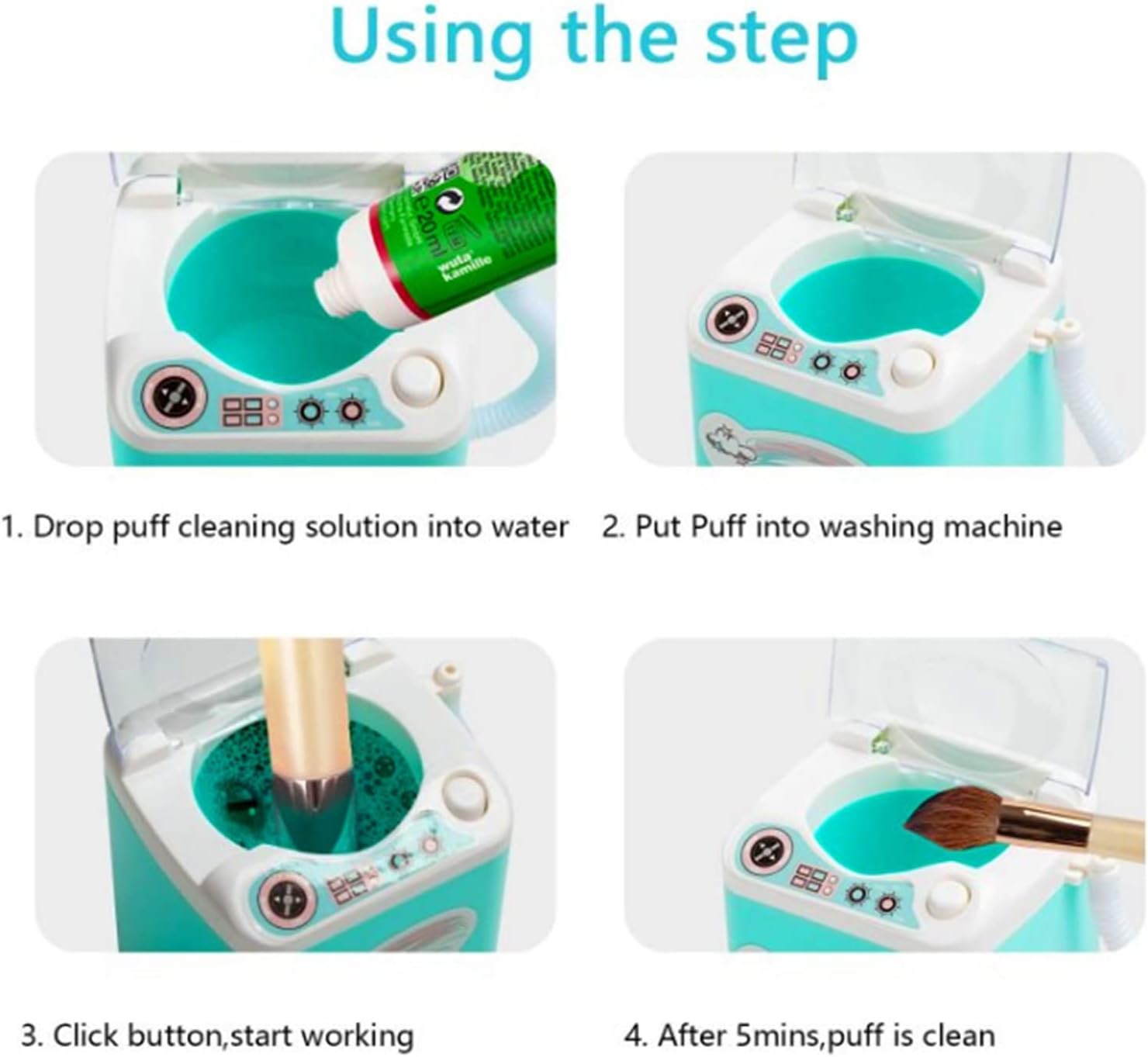 ►Products specification: Product name: Mini Makeup Washing Machine Material: ABS plastic Gross weight: 200 g Size: 3.