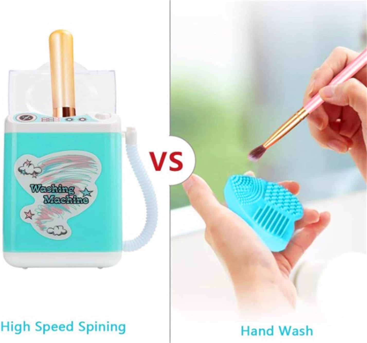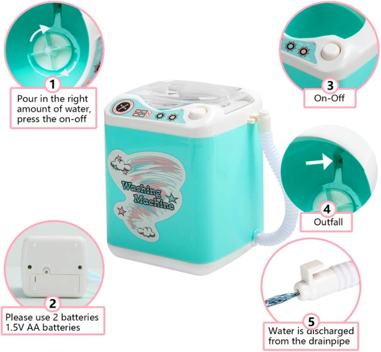 2 Inch ►Easy to operate : Fill the mini washing machine with warm water, mix up the makeup cleanser, place your makeup brushes and sponges in it, then start the machine, wait a moment and you can get your cleaning done.
