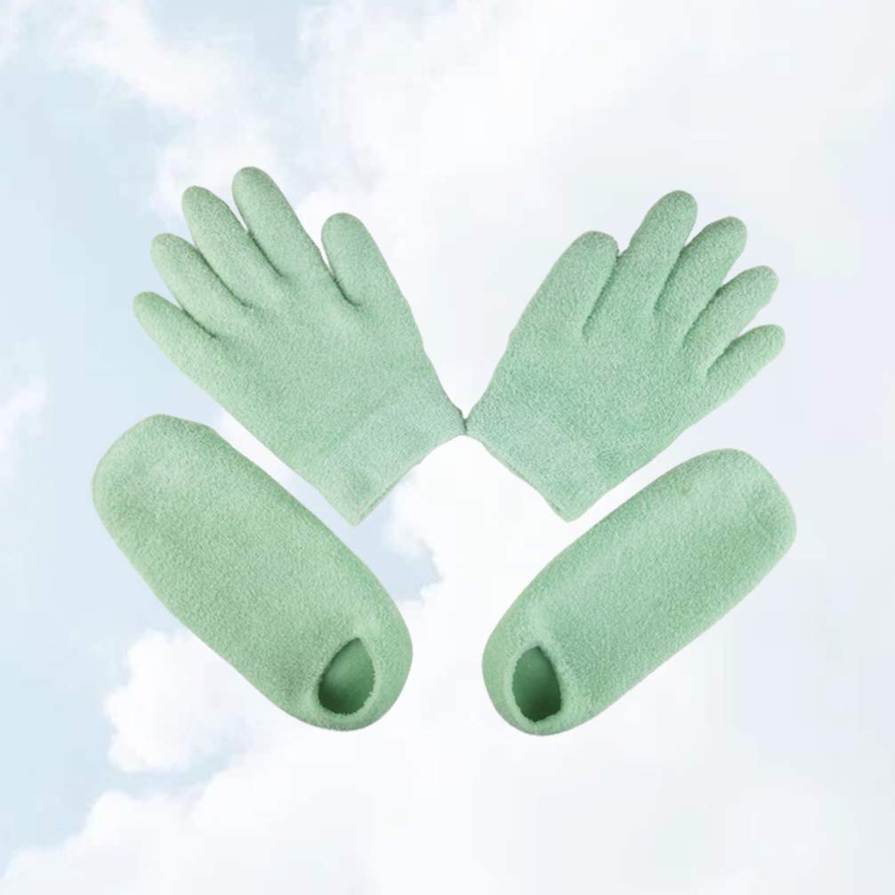 Just slip on these comfortable gloves & booties and wear them around the house, or wear them to bed!Features- Material: Gel.