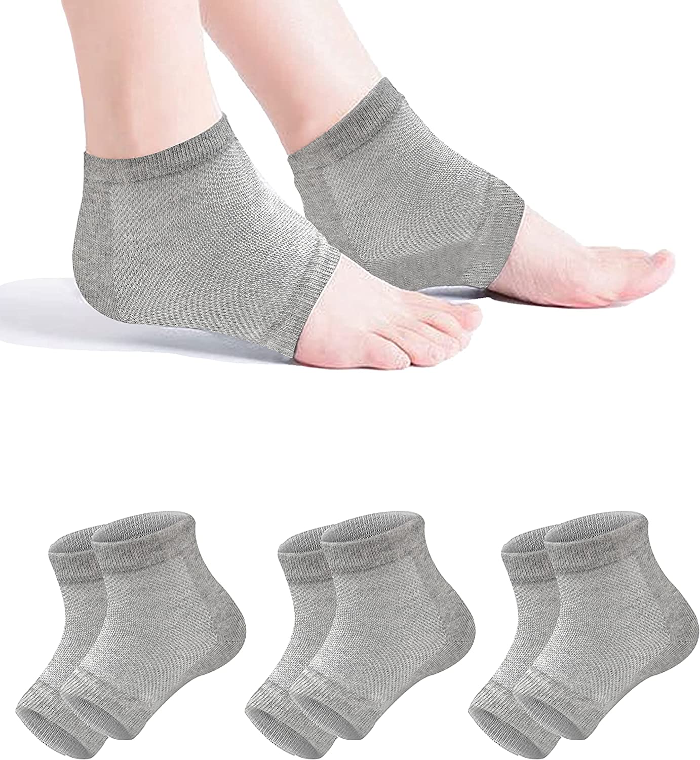 • PERFECT GIFT & UNISEX: Our gel sock set contains 3 pairs of gray heel socks for dry cracked feet for both men and women. Also, you can gift it to your loved ones, friends and protect your heels, starting today