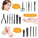 Multi-Functional Care Set: 16 pcs nail kit, manicure tools including four manicures 1x Fingernail Clipper, 1x Large Nail Clippers, 1x Cuticle Nipper, 1x Diagonal Pliers, five facial treatments 1x Obtuse Push Broach, 1x Ear Pick, 1x Eyebrow Scissors, 1x Cleaning Brush, 1x Acne Needle. three pedicure knives 1X Oblique Knife, 1X Crescent pedicure knife, 1X Flat Knife, four manicure auxiliary tool 1X Nail File 1X Scraper 1X Dead Skin Push, 1X Double Headed Pick.