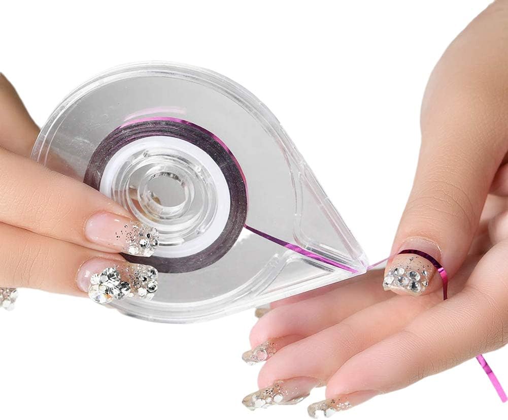 Package includes: 30 rolls of 1mm laser style (30 different colors, each roll is about 20 meters long); 10 rolls of 2mm matte style (10 different colors, each roll is about 20 meters long); 2Pcs nail striping dispenser holder roller case.