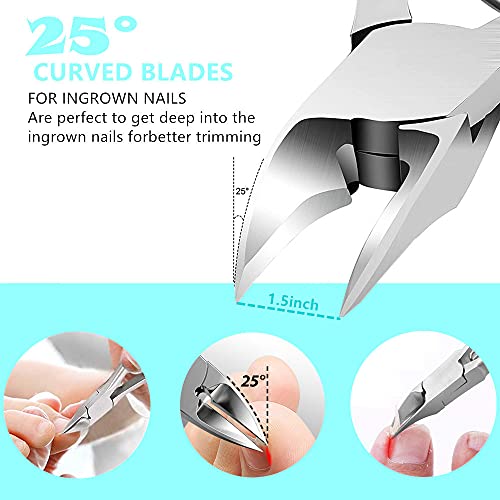 Podiatrist Toenail Clippers: Thick large nail clipper is specially designed to trim toenails and fingernails safely, 25°nail shape curved blade especially for thick nails, ingrown nails, paronychia, and fungus nail situation. Ideal nail trimmer kit for everyone, perfect for elderly, athletes, arthritic, podiatrist, men, women, seniors