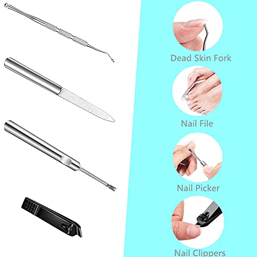 Professional Thick Toenail Clippers : Made with high quality stainless steel material. Wide opening nail clippers set toenail clippers include 1× Podiatrist Toenail Clippers,1× Wide Jaw Opening Nail Clipper,1Dead Skin Fork, 1× Nail Polish File, 1Nail Picker. Meet your different nail trimmer needs, keeping your feet healthy without pain and nail fungus