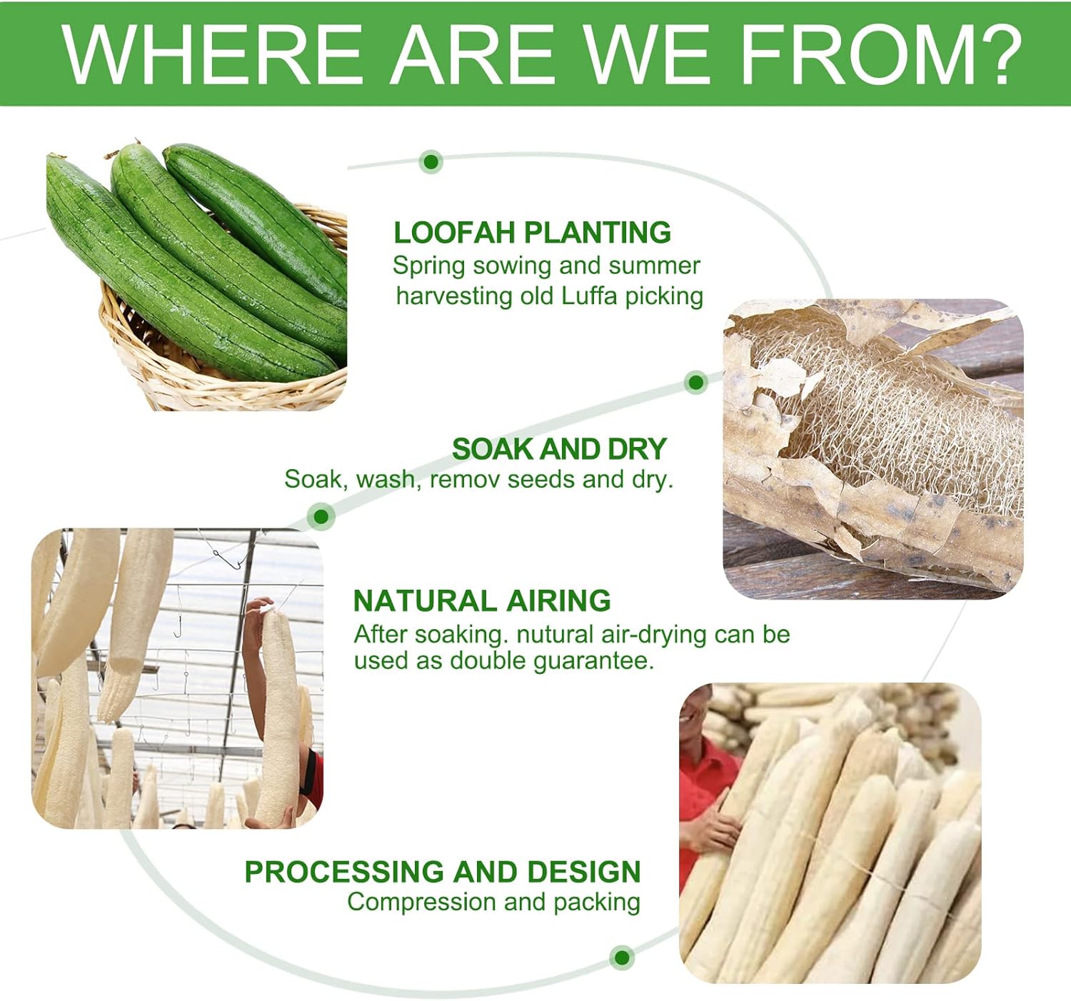 Organic Natural Loofah: Made from original loofah shelled and de-shelled, there will be no black shell or pulp residue to affect the quality of the product.