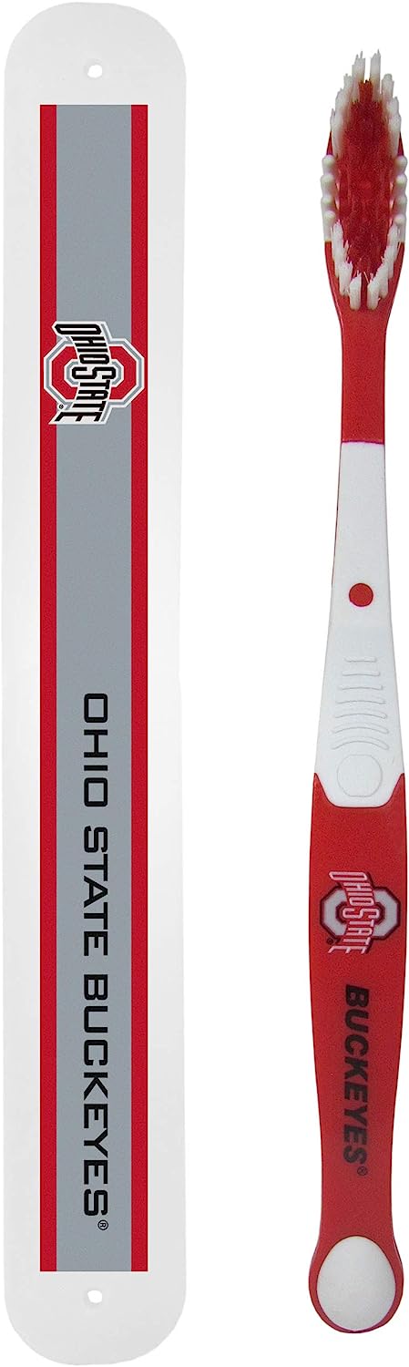 The toothbrush comes with a travel case featuring team colors and logo.