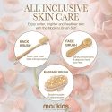 The brush set includes ; 1 Long wooden brush , 1 face brush , 1 hand brush and a cloth storage bag which is great to travel with. The dry brushing body brush is a great addition to your self care kit and have straps for easy use .