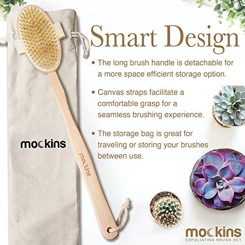 Rejuvenate and exfoliate your skin with the 100% natural boar bristles dry brush brush set the scrub brush exfoliating brush can be used as a back scrubber bath sponge brush body scrubber: Why go to the spa if you can have the full spa experience in the comfort of your own home with this complete exfoliating dry brushing body brush set, which includes a travel and storage cloth bag , a body brush , an exfoliator brush , a nail brush and a face brush .