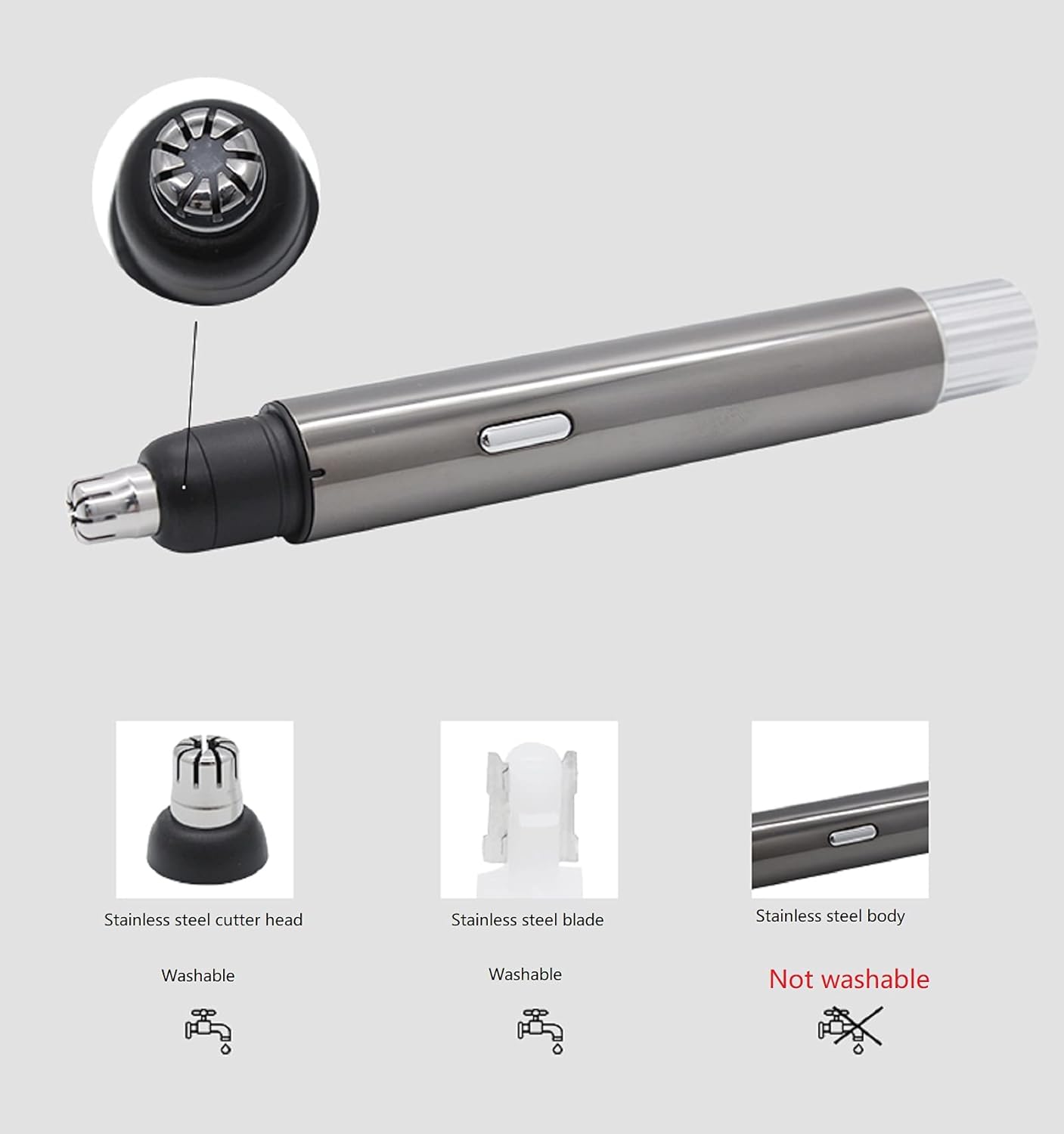 Function Nose hair remover nose hair trimmer comfortably removes nose, ear and unwanted facial hair plus details beards and eyebrows with dual edge blades keeps skin protected and minimizes irritation.