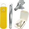 Specifications: Material: stainless steel Color: as the picture shows Size: as the picture shows Package includes: 1*nose hair trimmer with plastic storage box, 1*cleaning brush, 1*Nose Hair Trimming Tweezers with a leather bag Notes: In fact, the nose hair is powerful, don”t cut it too short Every part of our body has its own function, and so is the nose hair.