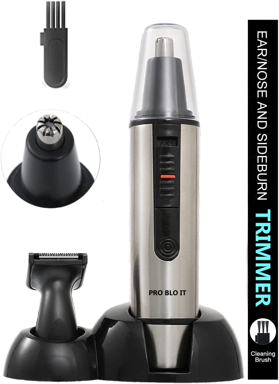 The PRO BLO IT Trimmer Is Made of high-quality stainless steel, this cordless ear, nose hair and sideburn trimmer will remove unwanted hair from your nose, ears, sideburns, eyebrows, beard, and face. One-button design is easy to use and suitable for men and women.