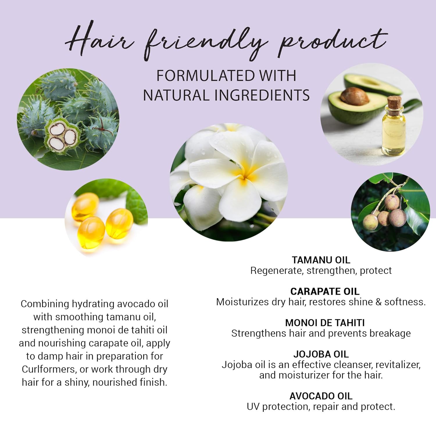 Using a blend of hydrating avocado oil, smoothing tamanu oil, strengthening monoi de tahiti oil and nourishing carapate oil works to nourish and care for your hair.