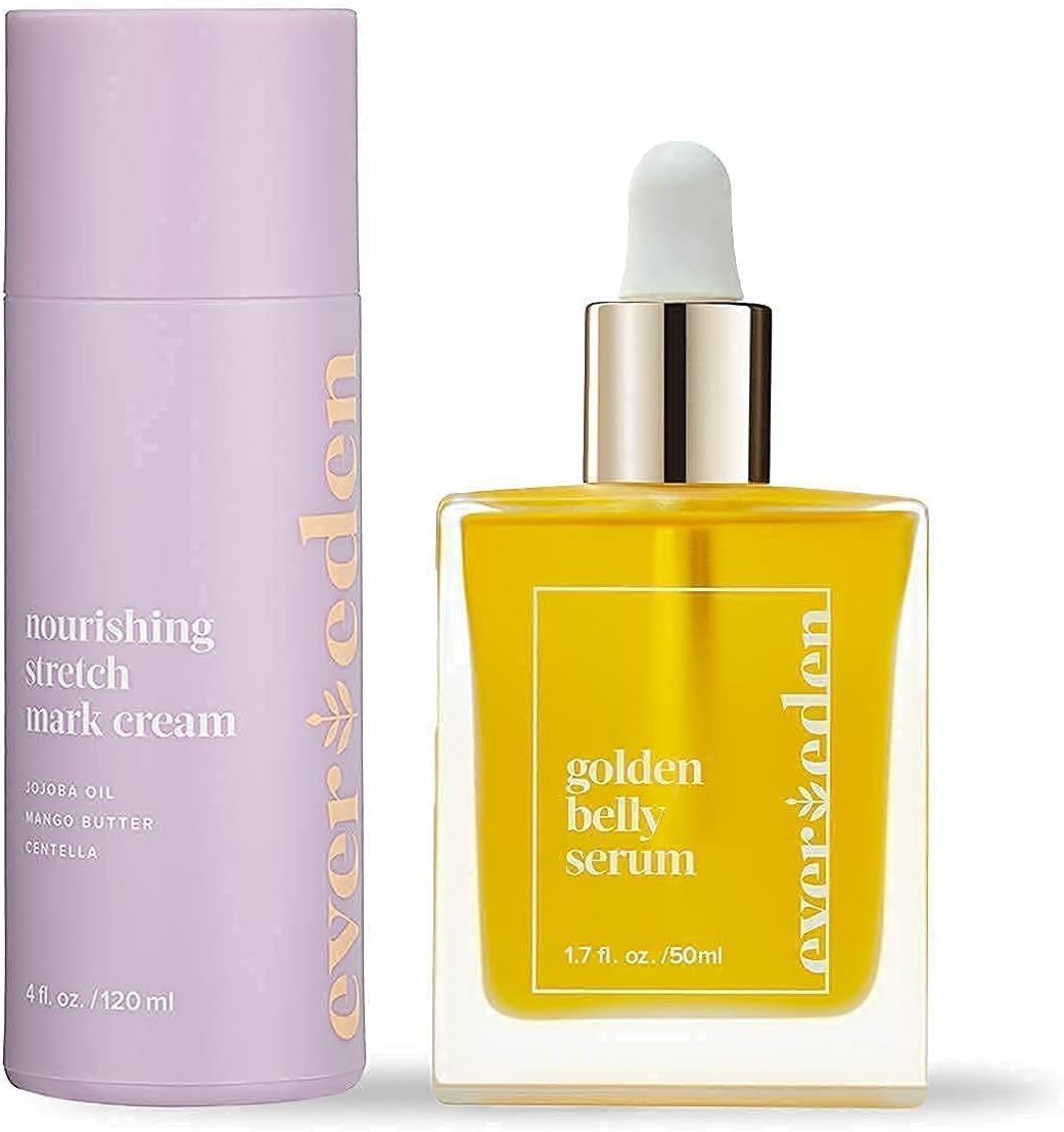 Nourishing Stretch Mark Cream, 4 fl oz & Golden Belly Serum, 1.7 fl oz | 2 Item Bundle Set | Natural and Clean Pregnancy Skincare