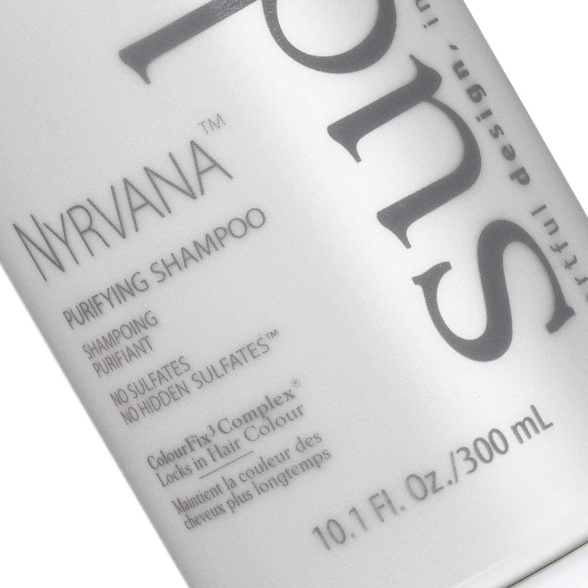 Nyrvana Purifying Shampoo removes excess styling and environmental buildup without drying.
