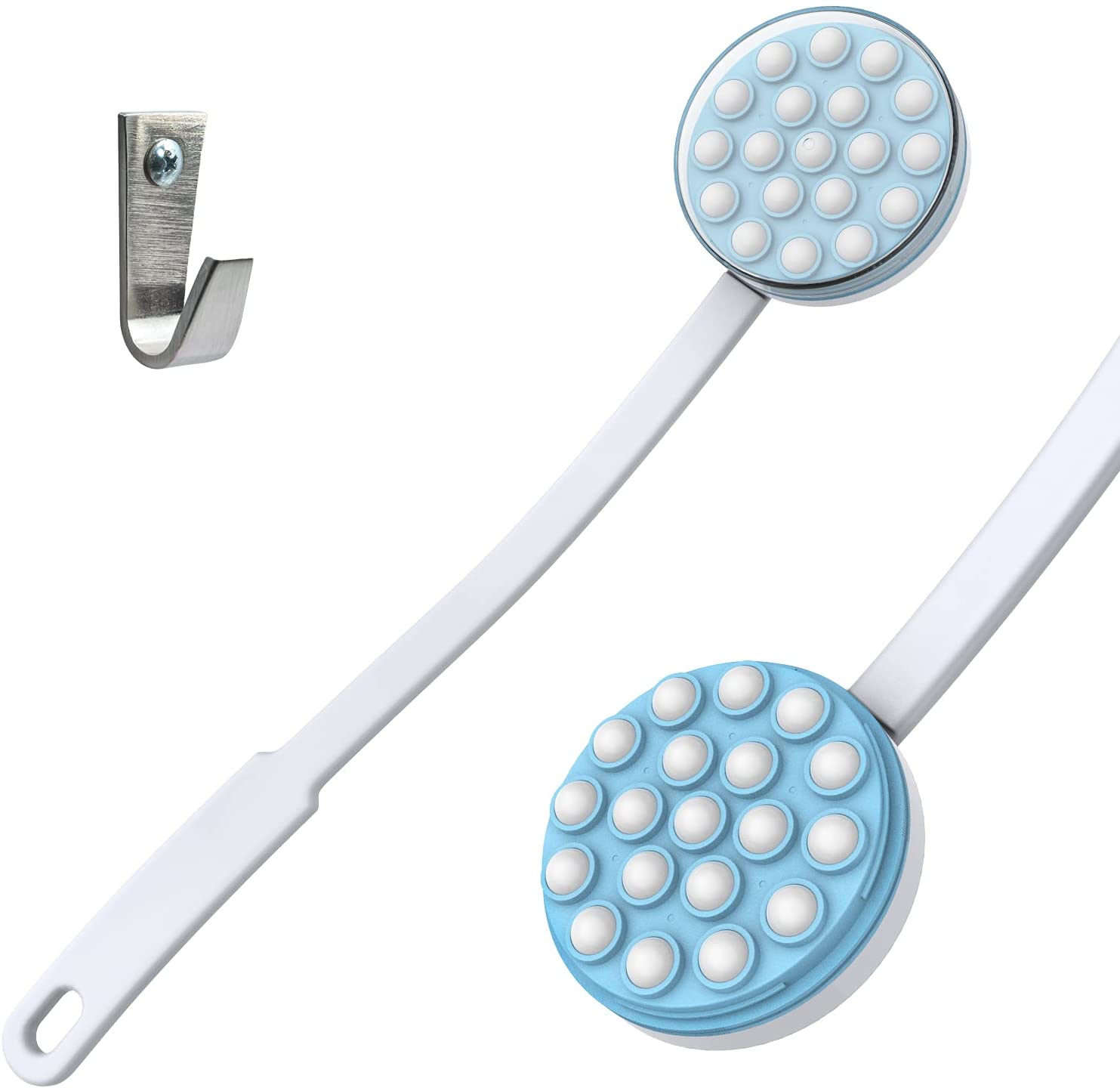 EASILY LOTION APPLICATION:Extra long handle. The handle of this lotion applicator measures 17. 25 inches long. This allows you to apply creams and gels to hard to reach areas, such as the back and feet, without twisting or squirming, making it ideal for those with limited mobility. And it comes with a hook! Caution on the hook. It’s really strong.This tool will be your new best friend!