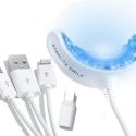 Cleanse LED mouthpiece with soap and water (make sure it is not plugged in to phone or computer). Dry. Place in mouth. Plug in to phone or usb. If you need to spit during process, remove mouth trays, spit, replace in mouth. Cleanse mouth trays, dry, and store in mesh pouch. If using for Teeth Whitening apply small amount of gel (sold separately, not included) to upper and lower trays before inserting into mouth. Follow instructions that come with your gel.