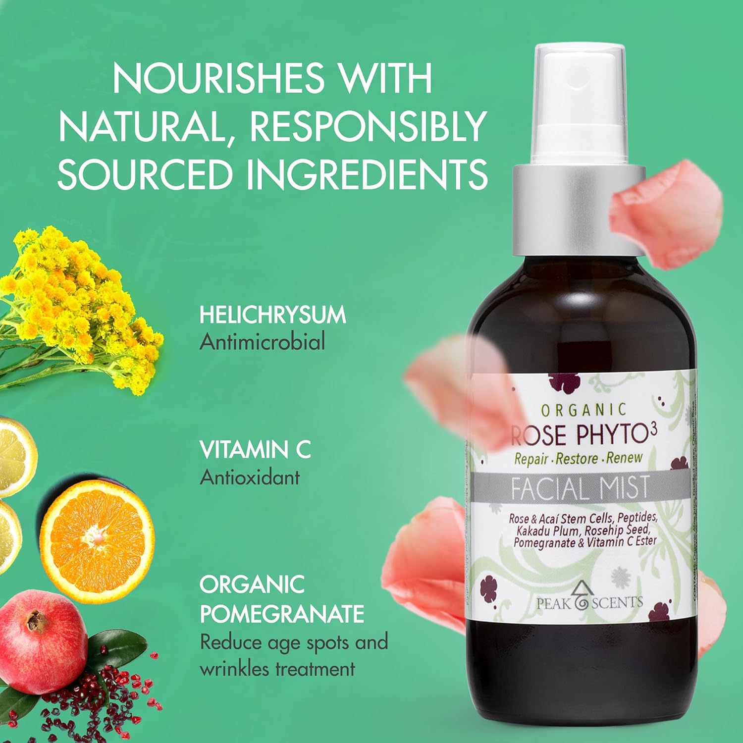 Contains: organic aloe juice, organic rose distillate, non-GMO vitamin C ester, organic cucumber extract, radish root ferment filtrate, organic hibiscus extract, watermelon extract, organic pomegranate seed extract, kakadu plum extract, helichrysum stoechas extract, organic acaí extract, edelweiss extract, palmitoyl tripeptide-5, hydrolyzed rice peptides, palmitoyl tripeptide-38, collagen prepeptide, phytocelltec, alpine rose stem cells and extract, phyto-biotic acai stem cells, organic rose essence, rose essential oil, bergamot (bergaptene-free) essential oil, organic frankincense essential oil.