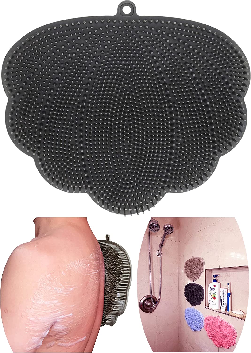 Ourbshf Silicone Hands-Free Big Flat Back Scrubber For Shower. It Does Stick To Various Walls With Some Water (Tested,Trust). Easy Clean Foot And Back Scrubber Back Brush Body Brush(Grey)