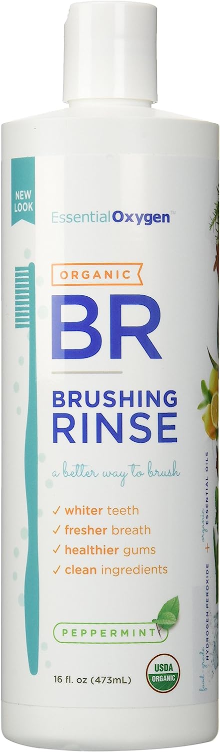 Certified BR Organic Brushing Rinse, All Natural Mouthwash for Whiter Teeth, Fresher Breath, and Happier Gums, Alcohol-Free Oral Care, Peppermint, 16 Ounce