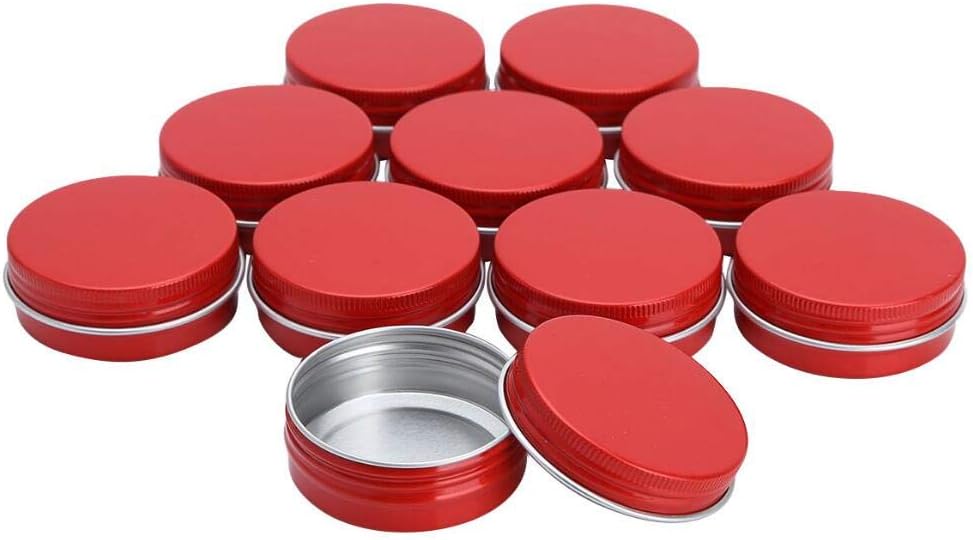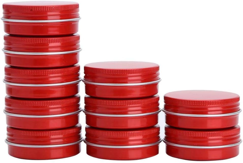 Features:10 -Pack 1 oz / 30ml Round Tins Aluminum Lip Balm Tin Cans Red Color, Cosmetic Sample Containers with Screw Top Lids, Metal Empty Travel Storage Jars for Salve, Spice, Candies, Crafts .