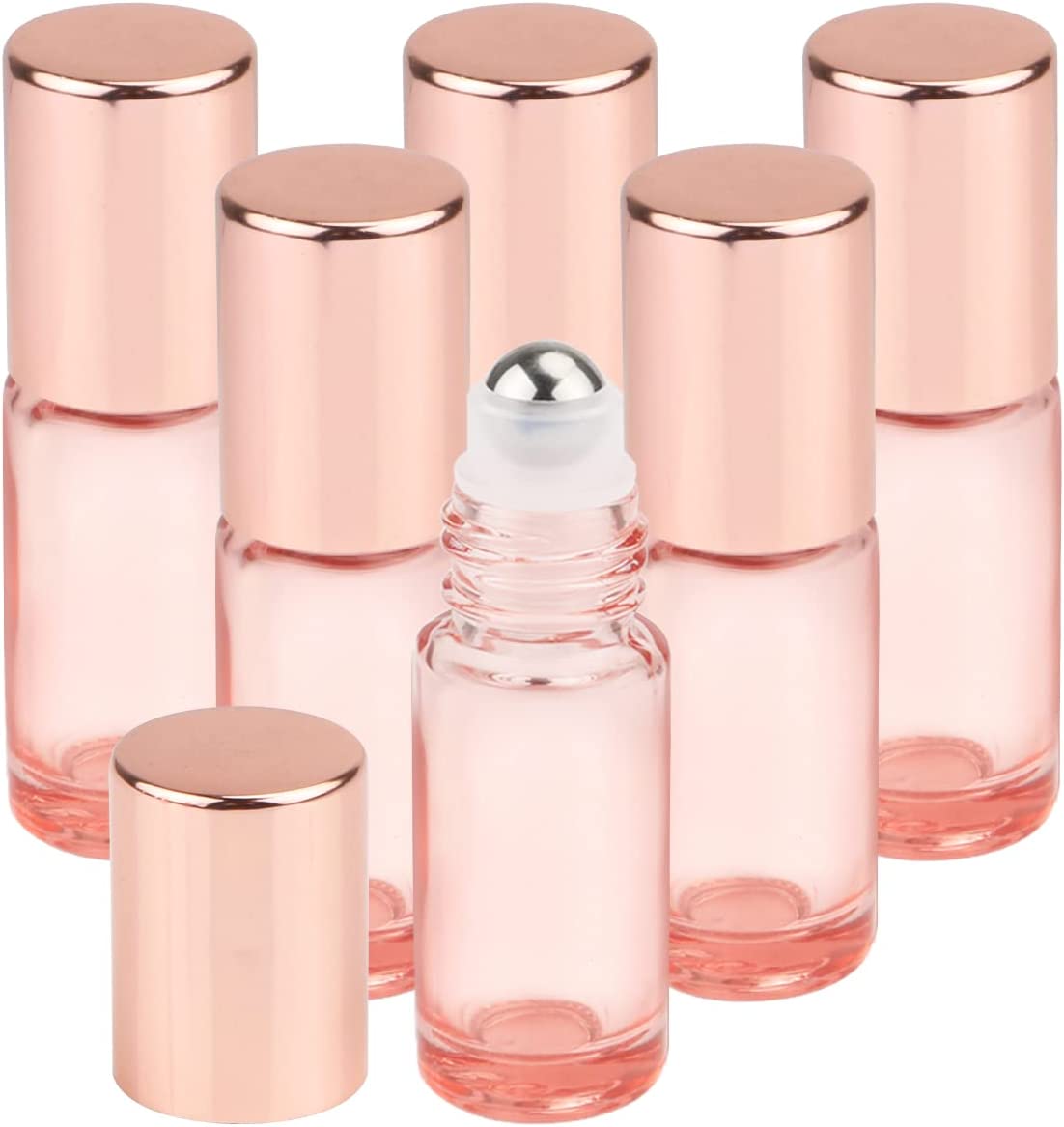 Oz Pink Glass Roller Bottles,6 Pack 5ml Roll On Bottles With Rose Gold Lids Roller Ball Bottles For Essential Oils Perfume Cosmetic Liquid